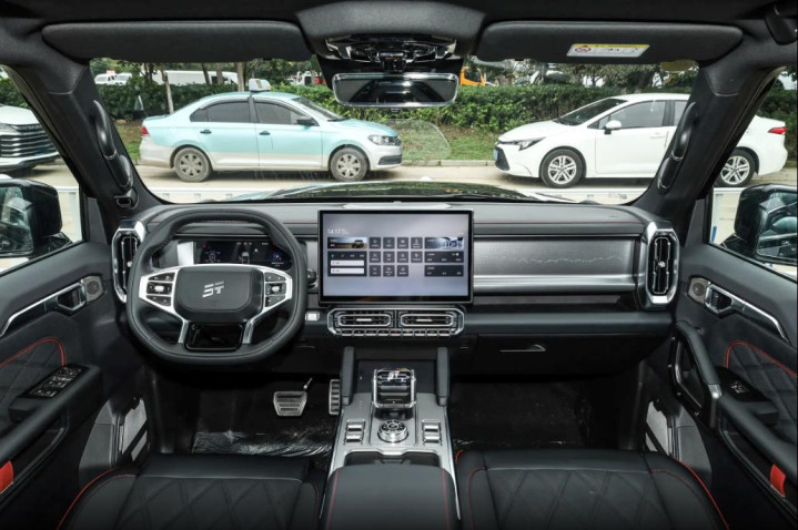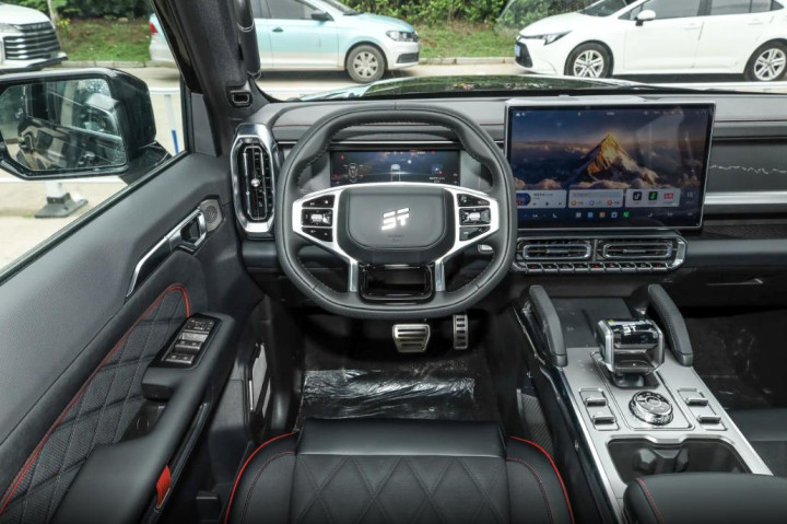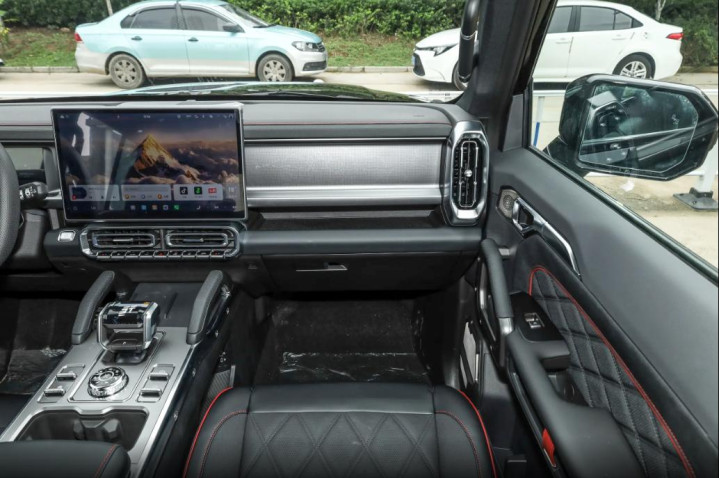 内饰延续了硬派矩阵布局,大量实体按键分布在中控台和方向盘上,空调调节、驾驶模式切换这些常用功能都能盲操作完成,开车时不用低头看屏幕,安全性提升不少。G318光刻饰板是内饰的点睛之笔,上面刻着318国道的路线图,对于喜欢越野的老司机来说,这不仅是装饰,更是一种身份认同的社交名片,聊起越野话题时,指着饰板就能打开话匣子。