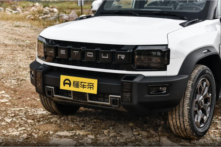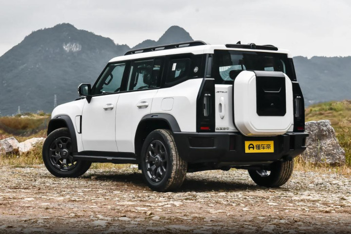 再看车尾,纵置大尺寸尾灯往那儿一立,瞬间把尾部视觉高度拉高了,看着特别敦实。而且刹车的时候,它还会有流水动态效果,后车一眼就能看清你的刹车意图,跟车再近也不怕追尾。那个备胎罩,不光是装饰,给整车添了浓浓的越野味儿,里面还能塞点小工具、拖车绳之类的零碎物件,实用性直接拉满!